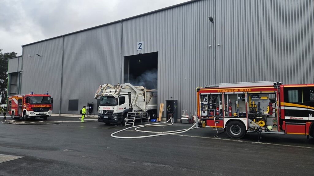 Während die Feuerwehr Wallenhorst ihr Fahrzeug nur wenige Meter weit fahren musste, war die Anfahrt für die Feuerwehr Rulle aufgrund des stockenden Verkehrs schwieriger. Der Müllwagen, dessen Ladung in Brand geraten war, hielt glücklicherweise aufgrund der guten Reaktion des Fahrers genau vor dem Feuerwehrhaus Wallenhorst. Dort begannen die Einsatzkräfte mit einer eine sofortigen Eindämmung des Brandes. Das Öffnen und Entladen des LKWs auf offener Straße war jedoch keine realistische Option, sodass nach Rücksprache mit dem örtlichen Abfallentsorgungsunternehmen die endgültige Löschung des Brandes auf dessen Gelände erfolgen durfte. In Begleitung der Feuerwehr fuhr der LKW daher zum nur einige hundert Meter entfernten Abfallentsorger.